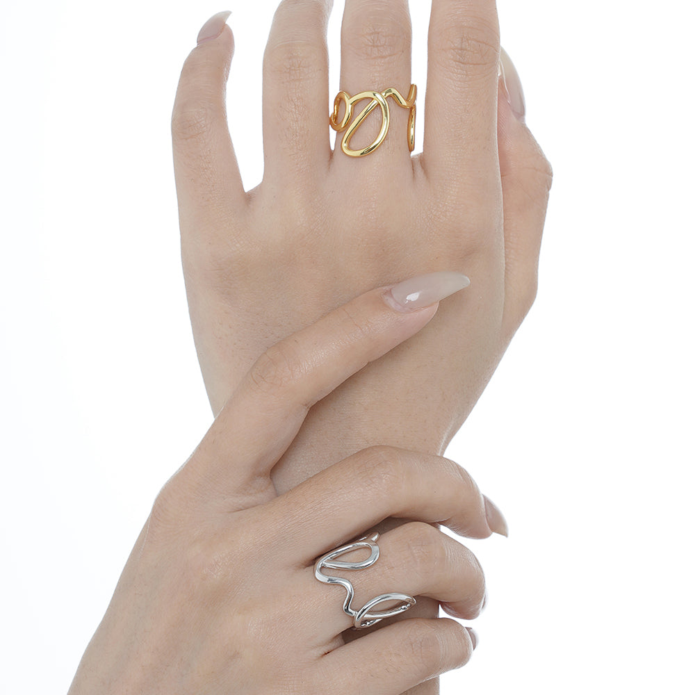 Cette bague, tel un coup de pinceau libre sur une toile vierge, célèbre l'expression spontanée de soi . Son design abstrait, inspiré des formes organiques, reflète la créativité, l'audace et l'indépendance . Elle attire l'œil sans en faire trop : un véritable bijou d'artiste.
