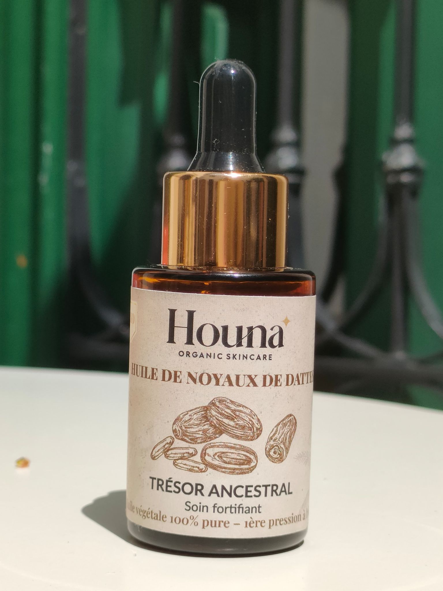 Extraite des noyaux de dattes récoltées dans les palmeraies du Sud tunisien, notre Huile de Noyaux de Dattes Bio est un trésor ancestral longtemps réservé aux soins des femmes berbères. Riche, fine et soyeuse, elle est aujourd’hui reconnue comme l’une des huiles végétales les plus précieuses pour nourrir, régénérer et sublimer naturellement la peau et les cheveux.